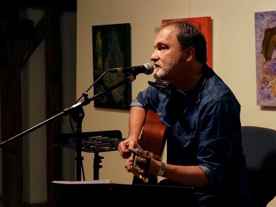 Ich habe zwölf Lieder produziert und zwei Gitarren-/ Mundharmonikastücke eingespielt. Zehn weitere Lieder sind in der Mache. Am Mischpult im Studio saß Volker Lesch.