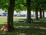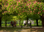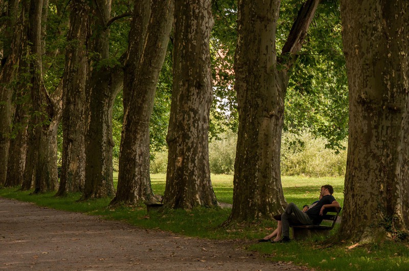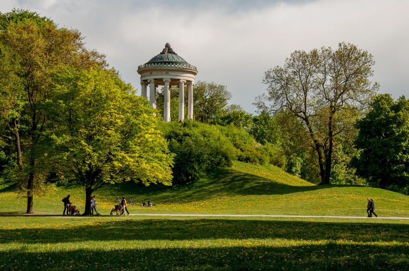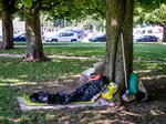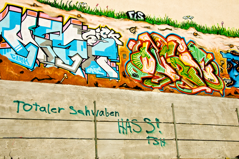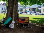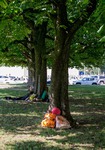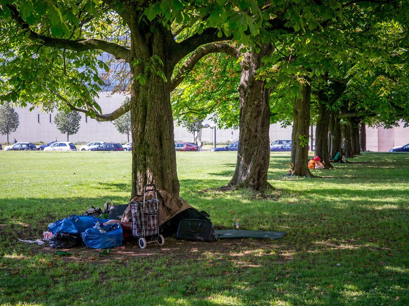 Parklandschaften. In München zusätzlich mit den Habseligkeiten von Obdachlosen, zwischen Pinakothek und Hochschule für Film und Fernsehen. Ob da Propaganda und