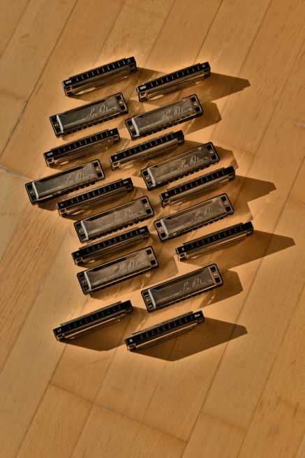 Mundharmonikas gibt es bekanntlich in unterschiedlichsten Stimmungen. Ich spiele diatonische Mundharmonikas in Dur-Stimmung, oft "Cross-Harp", wie im Blues.